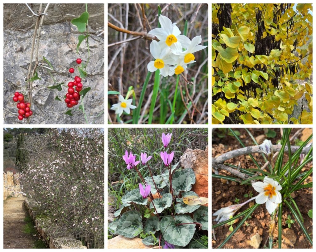 It is still early for most wildflowers. I was delighted to spot a few cyclamen, crocuses, and narcissus, and one blossoming almond tree at Sataf.