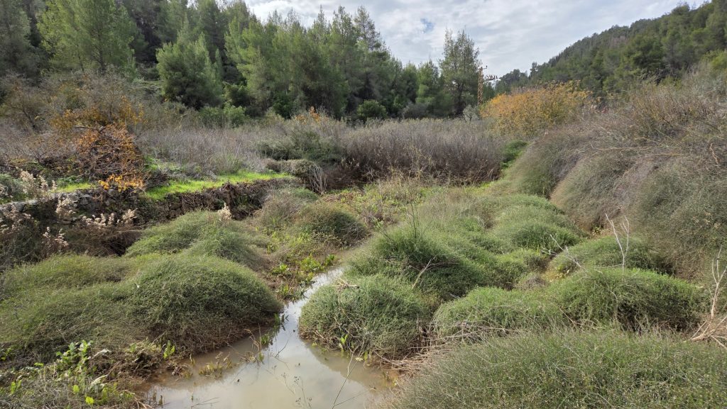Now that winter rains have drenched us, the trail alongside Nahal Sorek is lush and lovely.