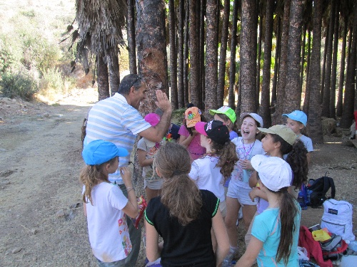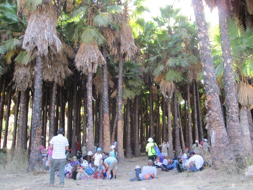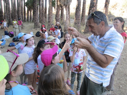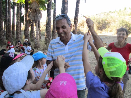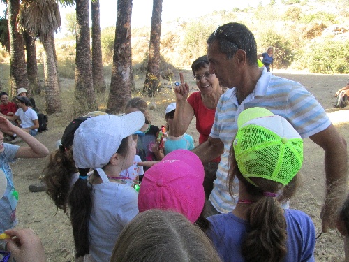 At the palm tree grove at the Mata spring we encountered more scores of Israeli Scouts, from Tel Aviv this time. Shlomo could not resist his natural inclination to play with the kids, and pulled out a magic trick.